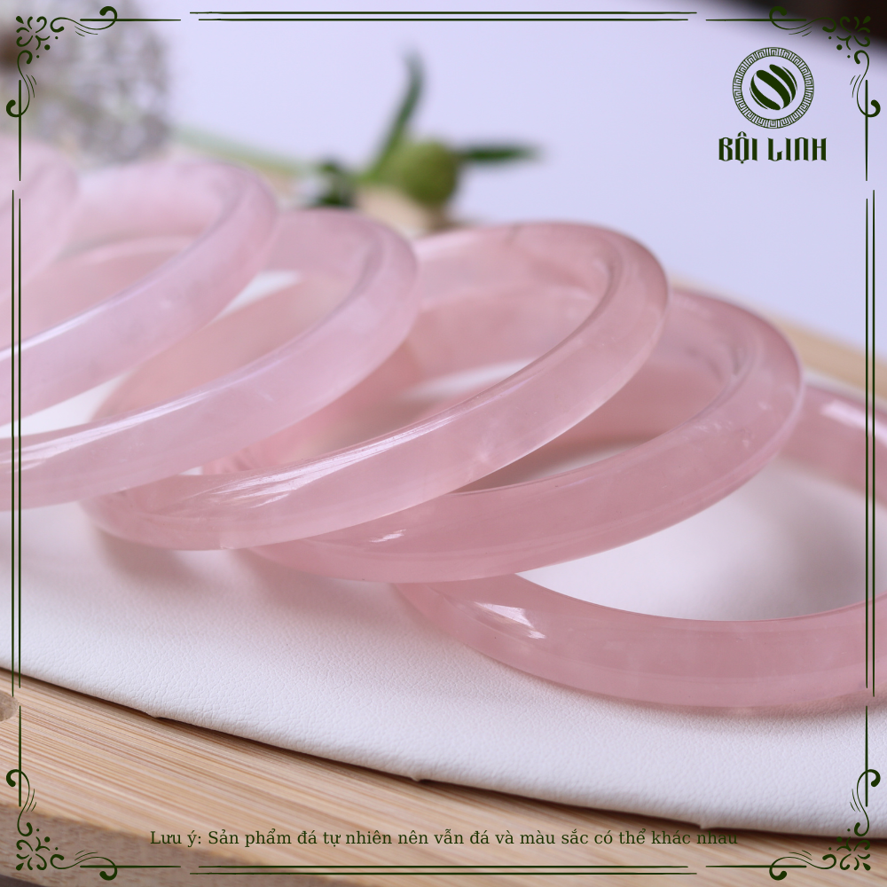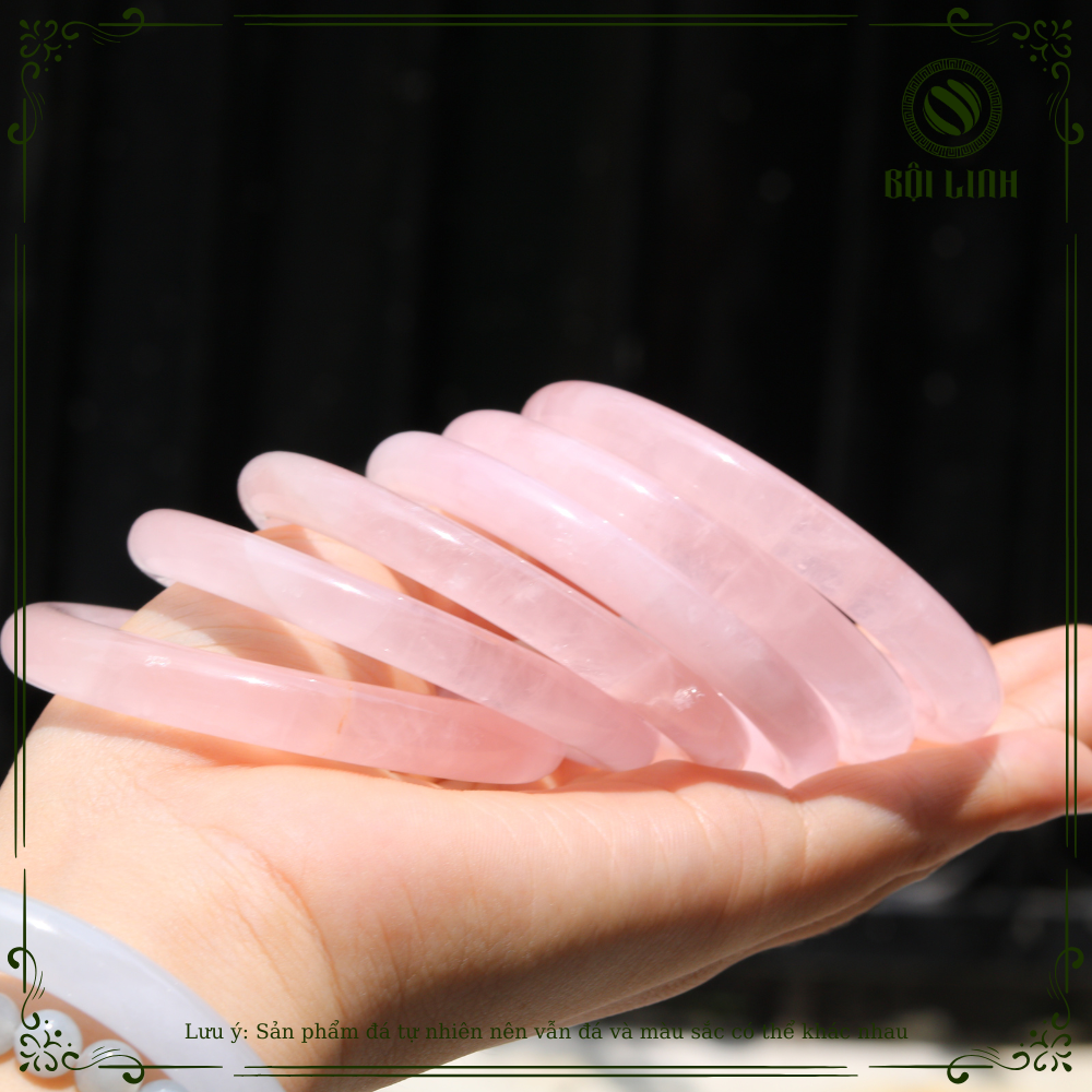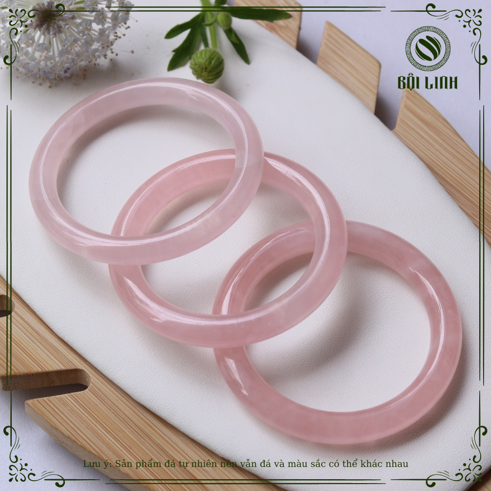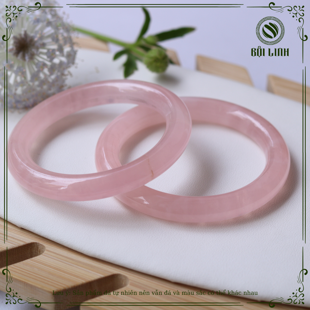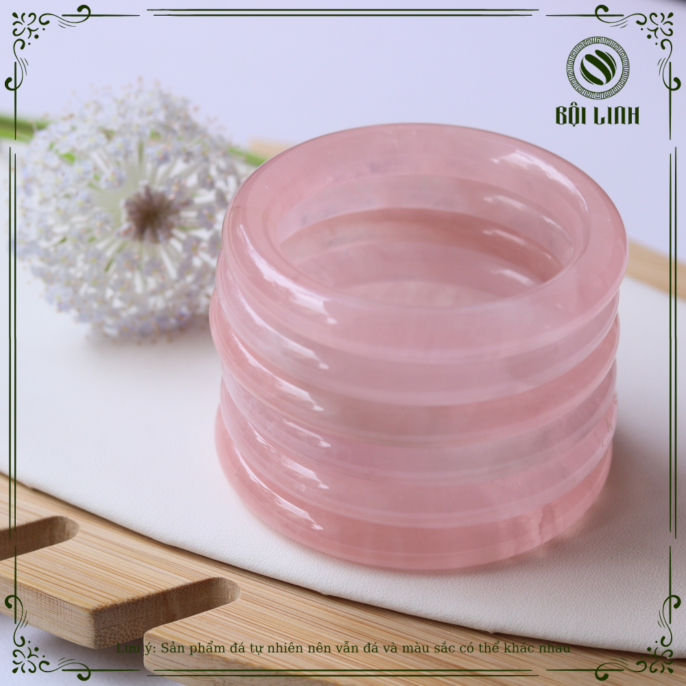 Vòng Nguyên Khối Thạch Anh Hồng từ cửa hàng Đá Năng Lượng Bội Linh được chế tác từ các khối đá thạch anh hồng tự nhiên. Được chế tác theo vòng bản bo tròn như đầu đũa.